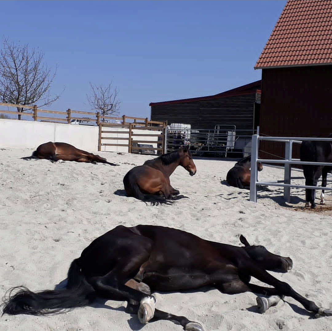 Unsere Pferde leben in großzügigen Paddockboxen und genießen Auslauf in kleinen Gruppen auf Sandpaddocks und Koppeln. Eine artgerechte Haltung, viel Bewegung und ein ruhiges Umfeld bilden die Grundlage für eine gesunde körperliche und geistige Entwicklung.